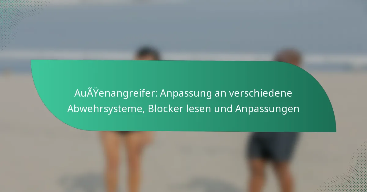 Der Außenangreifer ist ein zentraler Spieler im Volleyball, der sowohl offensive als auch defensive Aufgaben hat. Um erfolgreich zu sein, muss er sich an verschiedene Abwehrschemata anpassen, indem er die Formationen der Gegner analysiert und seine Strategien anpasst. Die Fähigkeit, Blocker zu lesen, ist entscheidend, da sie es den Angreifern ermöglicht, defensive Bewegungen vorherzusehen und informierte Entscheidungen zu treffen, um ihre Angriffe zu optimieren.